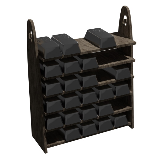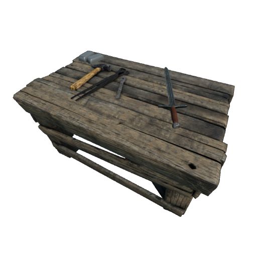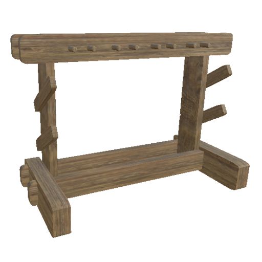 . holds blacksmith’s hammers. Workbenches near the shelf will automatically use them