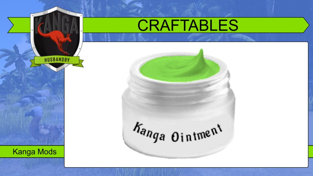The Kanga Husbandry mod adds a variety of new items to craft.