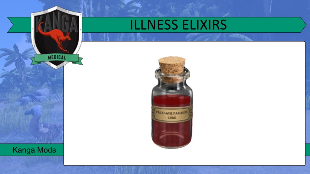 Illnesses are level based and either triggered by being near a certain dino or structure (e.g. compost bin) or occur randomly. More dino’s and structures increase the chance you will get an illness. All illnesses add visual effects that gradually get worse until the illness is cured. You can take a potion to clear the visual effects of an illness, but it only works for a short amount of time, it does not cure the illness and it goes at the cost of your overall wellness.