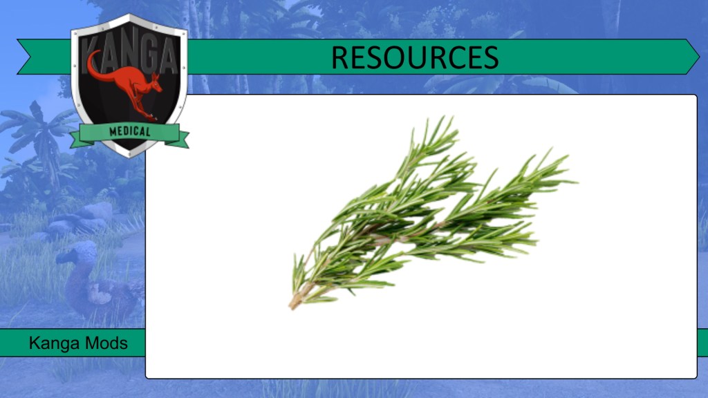The Kanga Medical mod brings 4 herbs into the game. Each herb spawns around the spawn area of 3 different dinos.